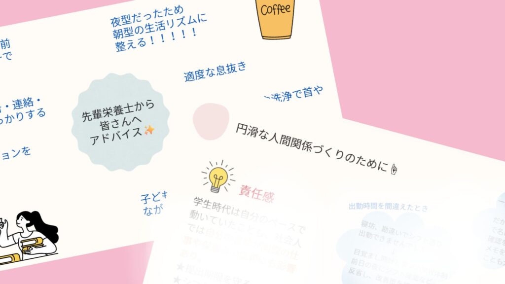 新卒1年目に聞いた「ここは押さえるべき!」というポイントや、経験豊かになってきた職員だからこそ分かる、有益なアドバイスの数々も👌