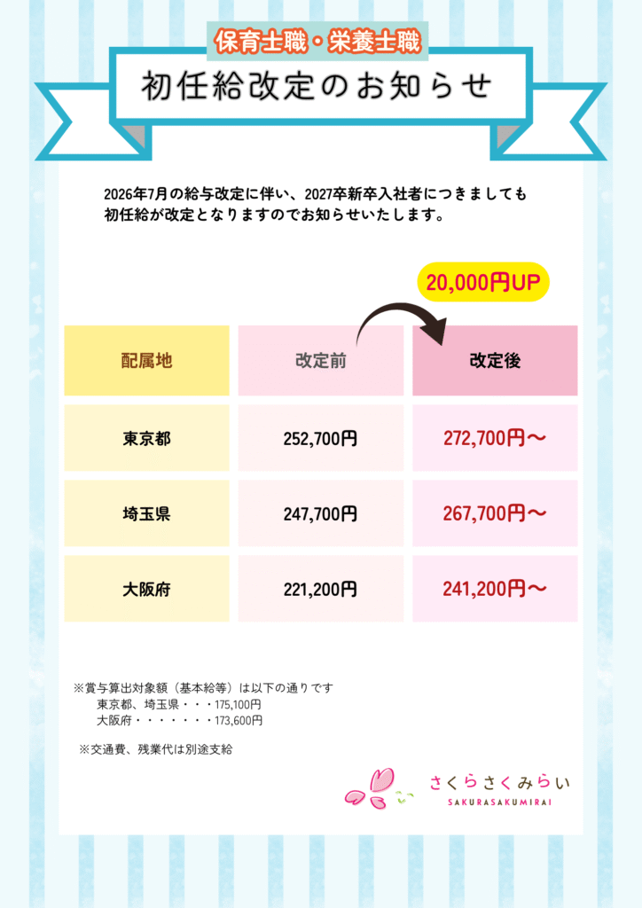 2026年7月予定の給与改定に伴い、27卒採用における初任給額も改定となりました。詳細は下記をご参照ください。